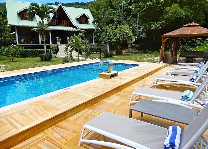 The 5-bedroom Villa Pasyon is situated within 10 minutes' stroll of Union Estate Park in La Digue and offers accommodation with an equipped kitchenette area. It includes Wi Fi throughout the property along with a plunge pool, a terrace and a garden on-site.